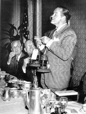 Bob Hope introduces the new Embury Traffic Gard at a hardware convention.( No, this has nothing to do with Brooklyn Union Gas nor barricades, but isn't it a neat surprise?)(Thanks to D. A. Pearson for this gem!)