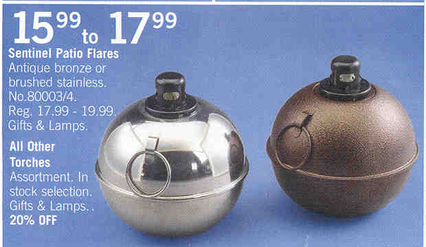 It's odd to find an ad for torches in the Spring of 2001! (Only 4 times the probable original cost.) Wow! Even cheaper in Apr/May, 2002.